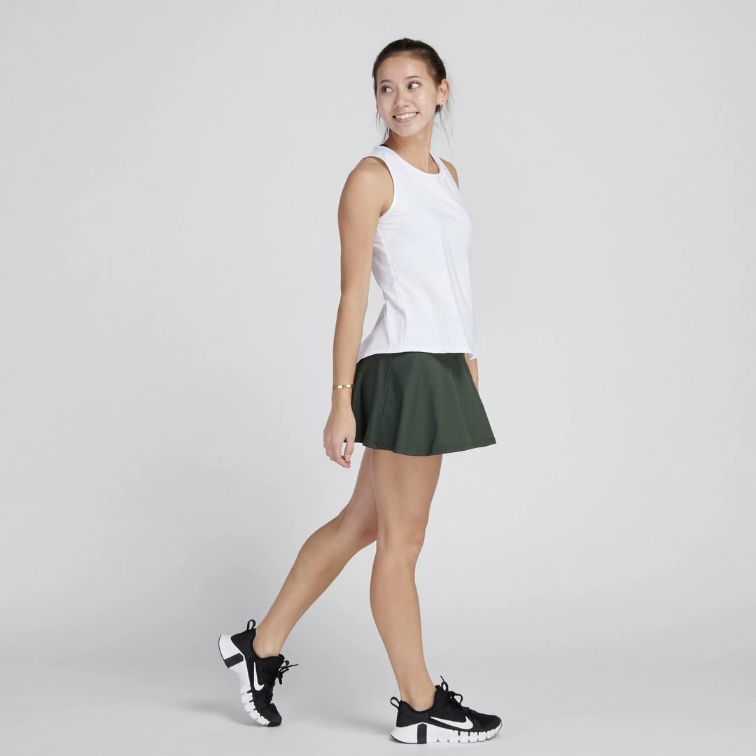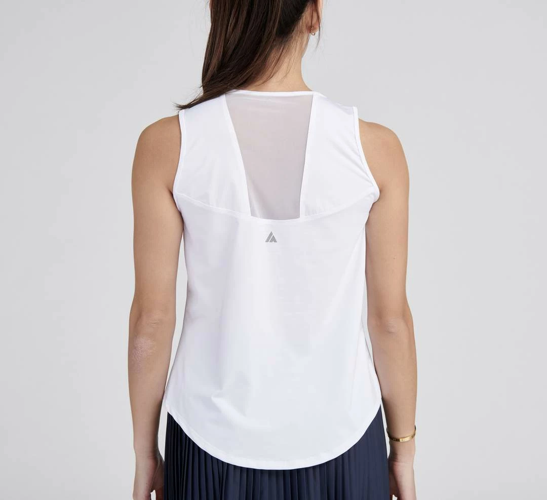 Ace Full Coverage Tank offers maximum comfort with its moisture wicking soft fabric and relaxed fit. This tank is designed to offer extra room on the shoulders and back while not compromising any detail. Featuring a back mesh panel and rounded bottom seam, this versatile tank pairs perfectly with any skirt or leggings for everyday coverage.Â