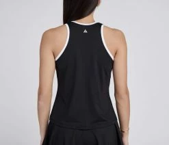 The Sienna High Neck Tank Top is a feminine halter top featuring a contrast binding. This flattering fit offers a large range of motion, great performance, anti-bacterial properties and recycled fabric featuring a stylish design. This tank is perfect for intense workouts, or catching up with friends.Â