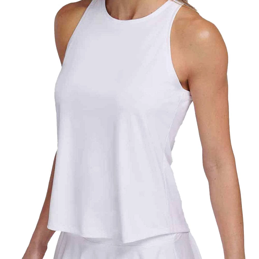 The Sienna High Neck Tank Top is a feminine halter top featuring a contrast binding. This flattering fit offers a large range of motion, great performance, anti-bacterial properties and recycled fabric featuring a stylish design. This tank is perfect for intense workouts, or catching up with friends.Â