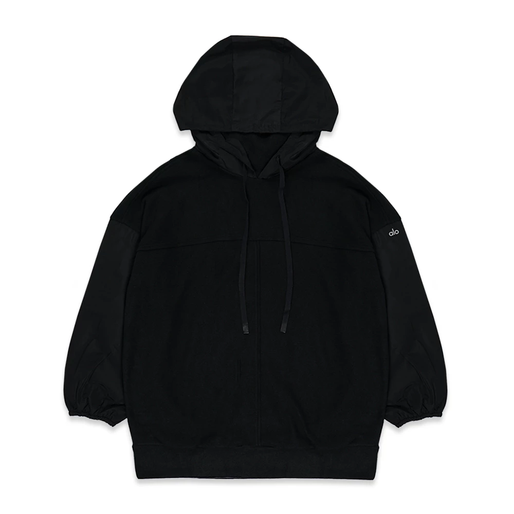 Get your off-duty game on-point with the Mixed Media Pullover. It’s made with cozy fleece and has an on-trend oversized silhouette. You’ll be wearing it with all your Alo go-tos.