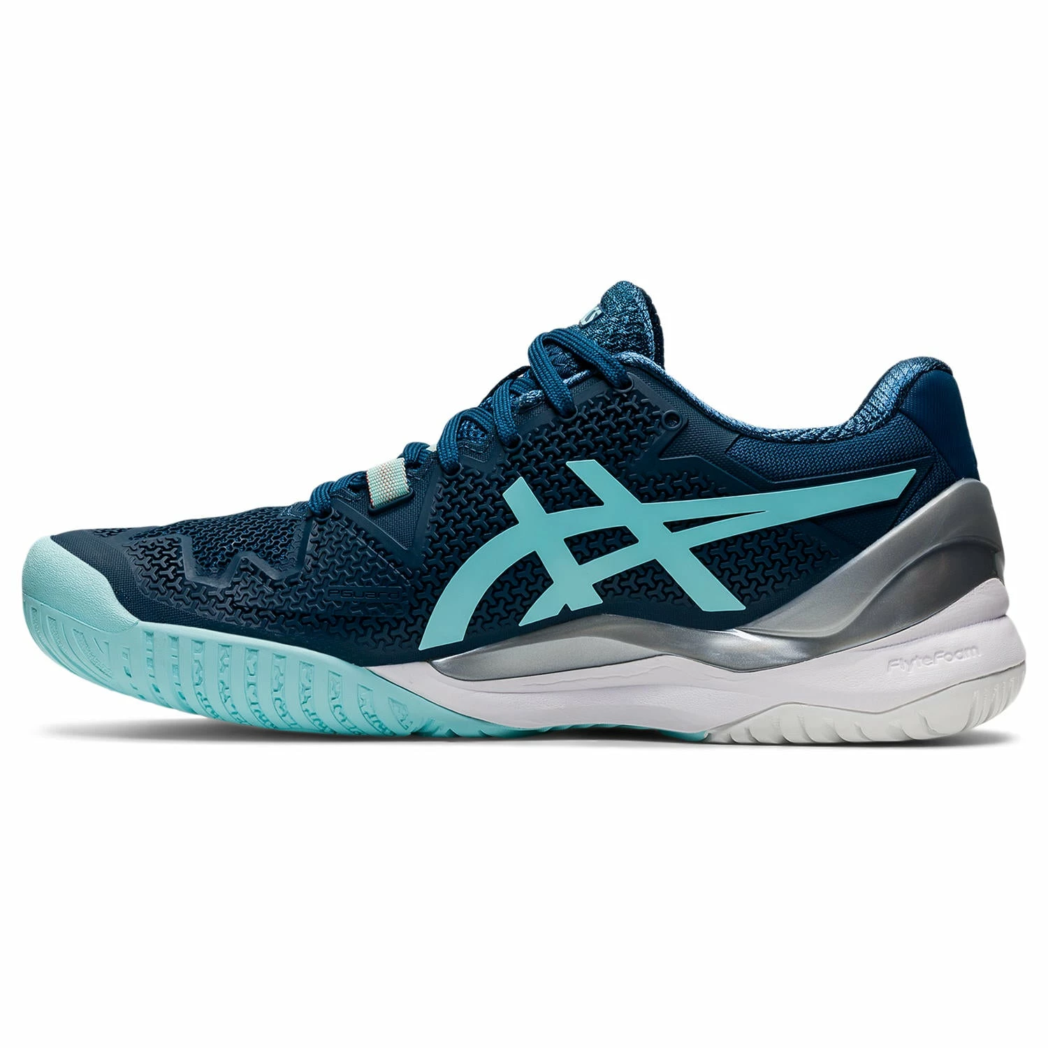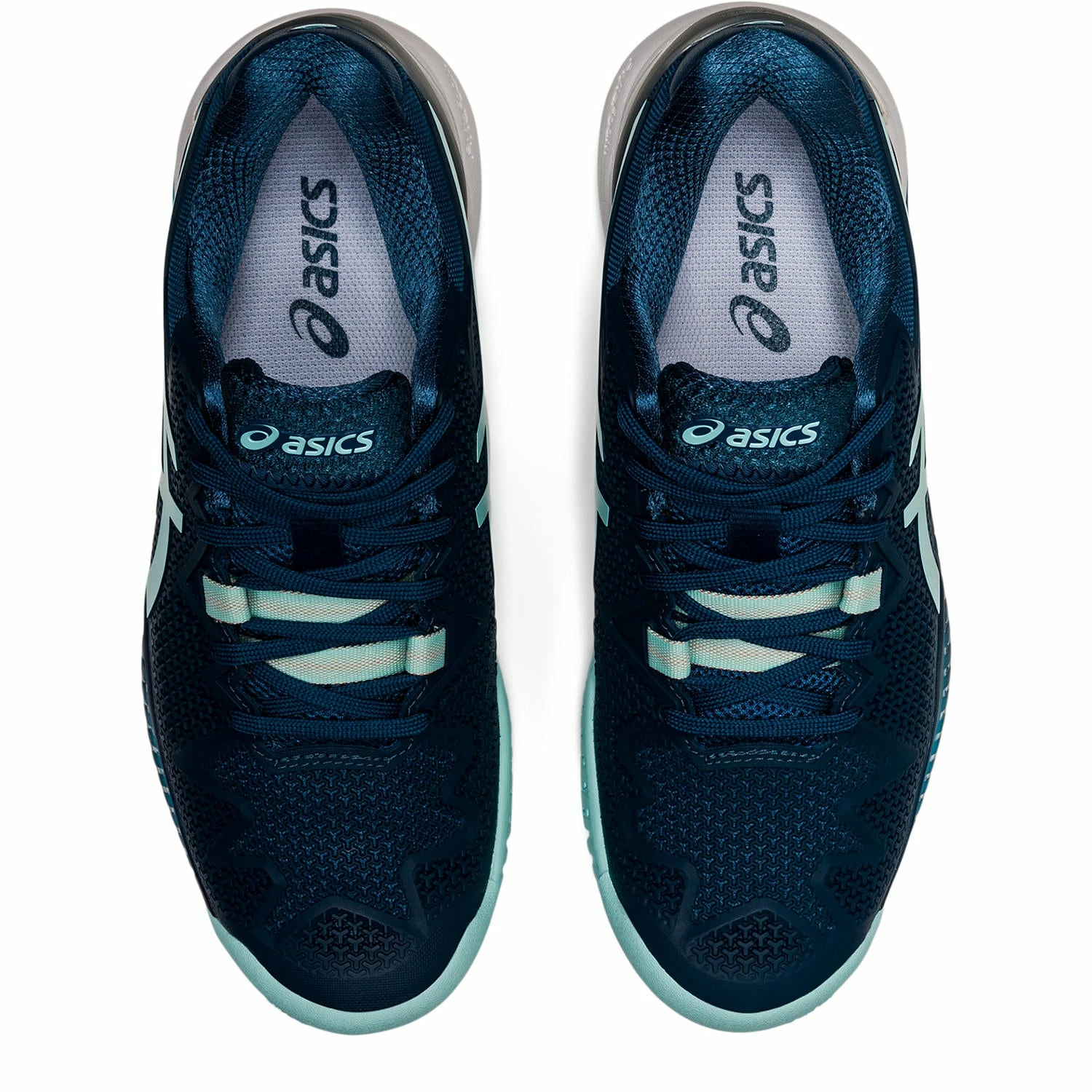 The GEL-RESOLUTIONâ„¢ 8 tennis shoe promotes a responsive stride with a close-to-the-court feel.
