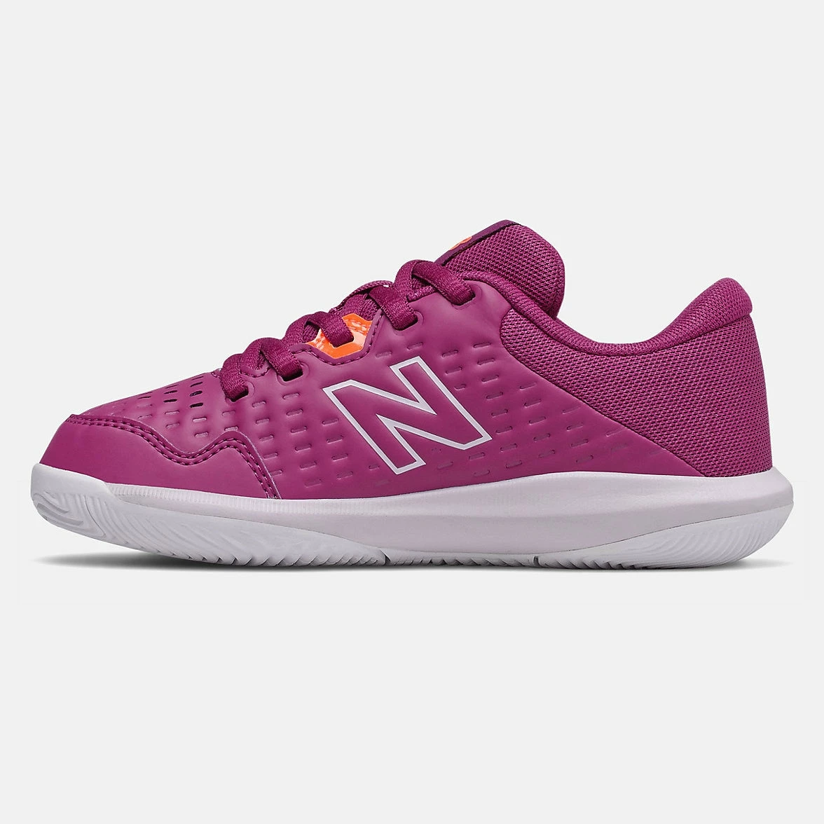Our KC696v4 is designed to help your budding tennis champ step up their hard court performance. These kids’ tennis shoes have an NDurance non-marking outsole with a herringbone pattern underfoot for superior grip so they can focus on their game, not their feet. The mesh upper has additional perforations for better breathability and the trendy pops of color will keep them looking fresh and confident at every match or practice.