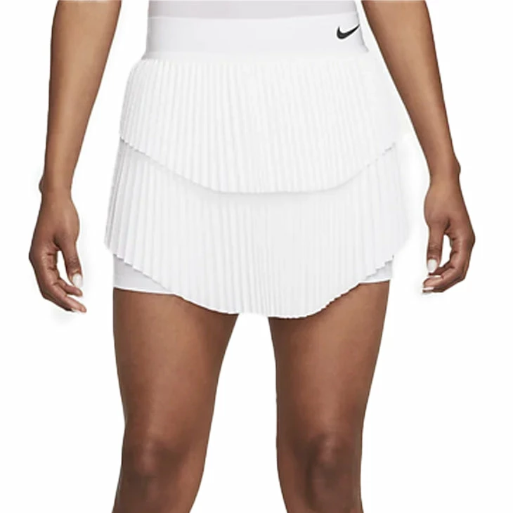 With its crisp layers of curving pleats and stretchy fabric, the NikeCourt Dri-FIT Slam Skirt puts a sophisticated twist on a court classic. Layered pleats flow and flare while you run the court, highlighting your movement for a bold look and feel. This product is made from at least 75% recycled polyester fibres.