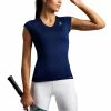 Ribbed, V-neck collar and ribbed armholes create a look that’s inspired by classic tennis tops.