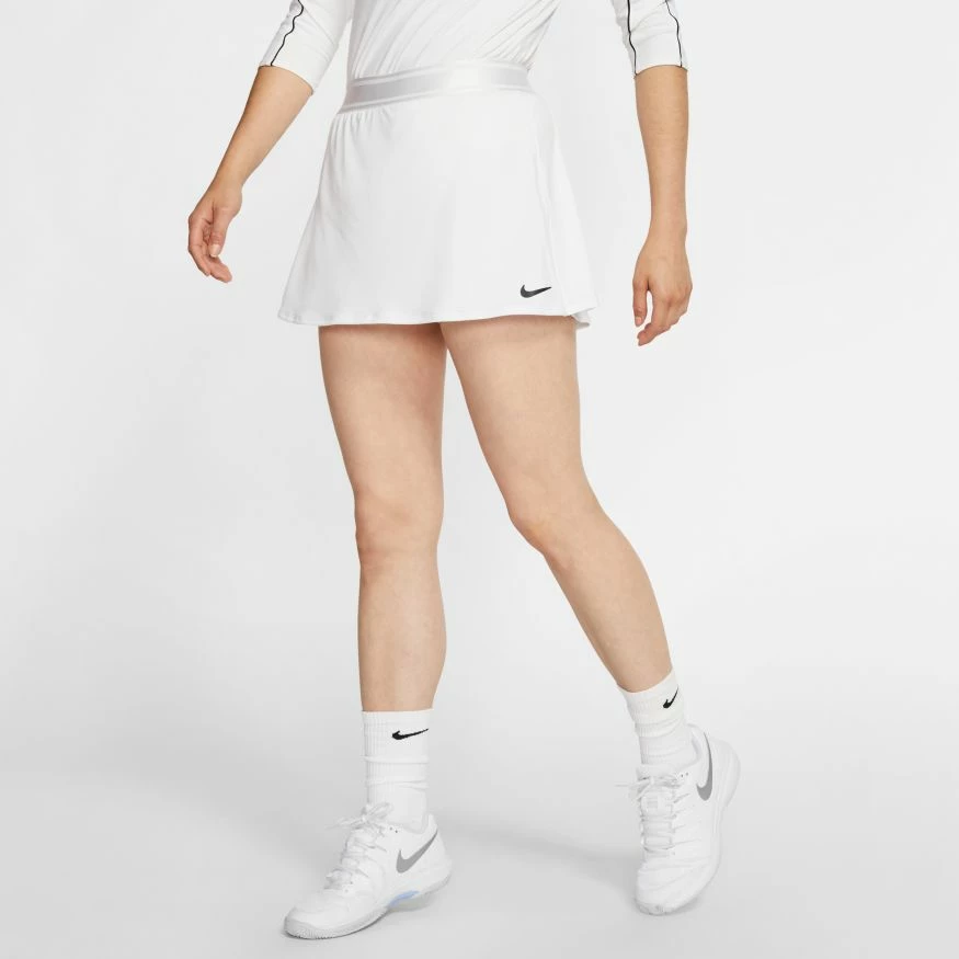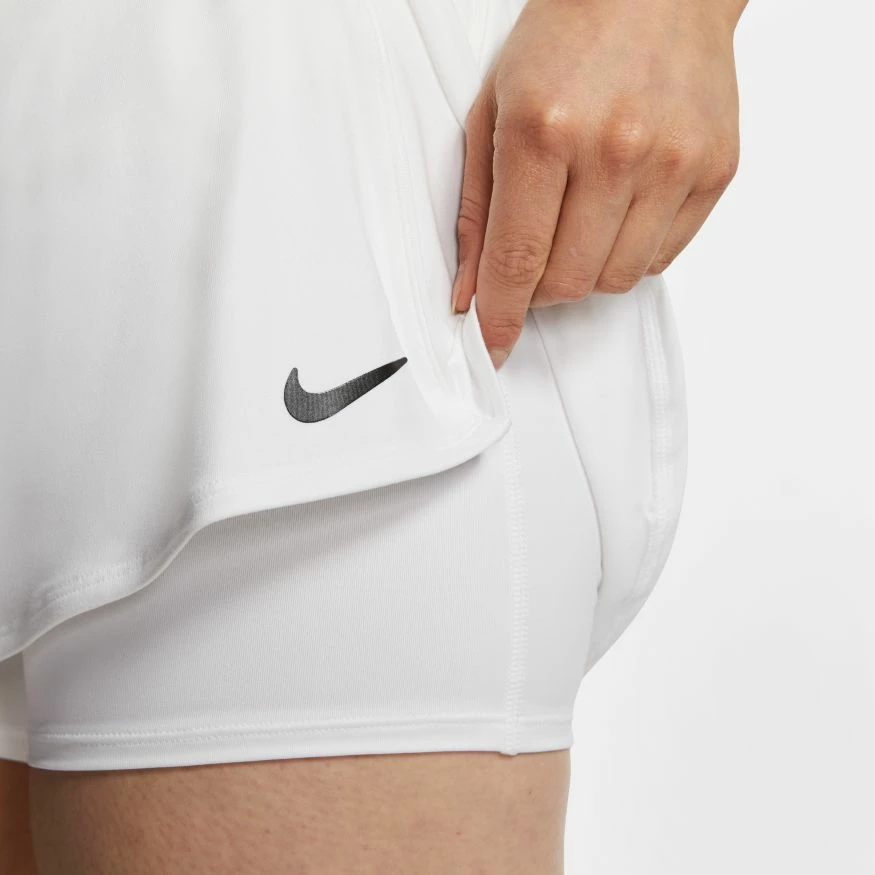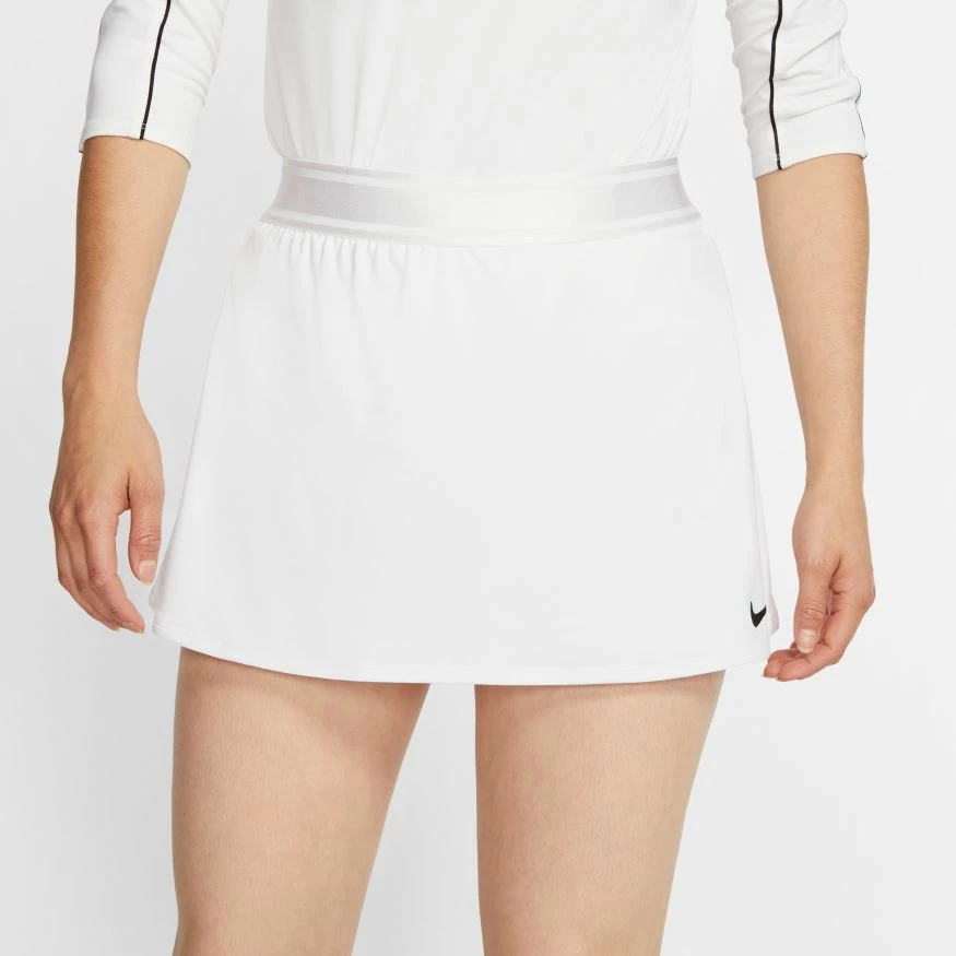 With a stretchy waistband and sweat-wicking fabric, the NikeCourt Dri-FIT Skirt is the perfect piece for intense matches. Inner shorts provide extra coverage while you move.