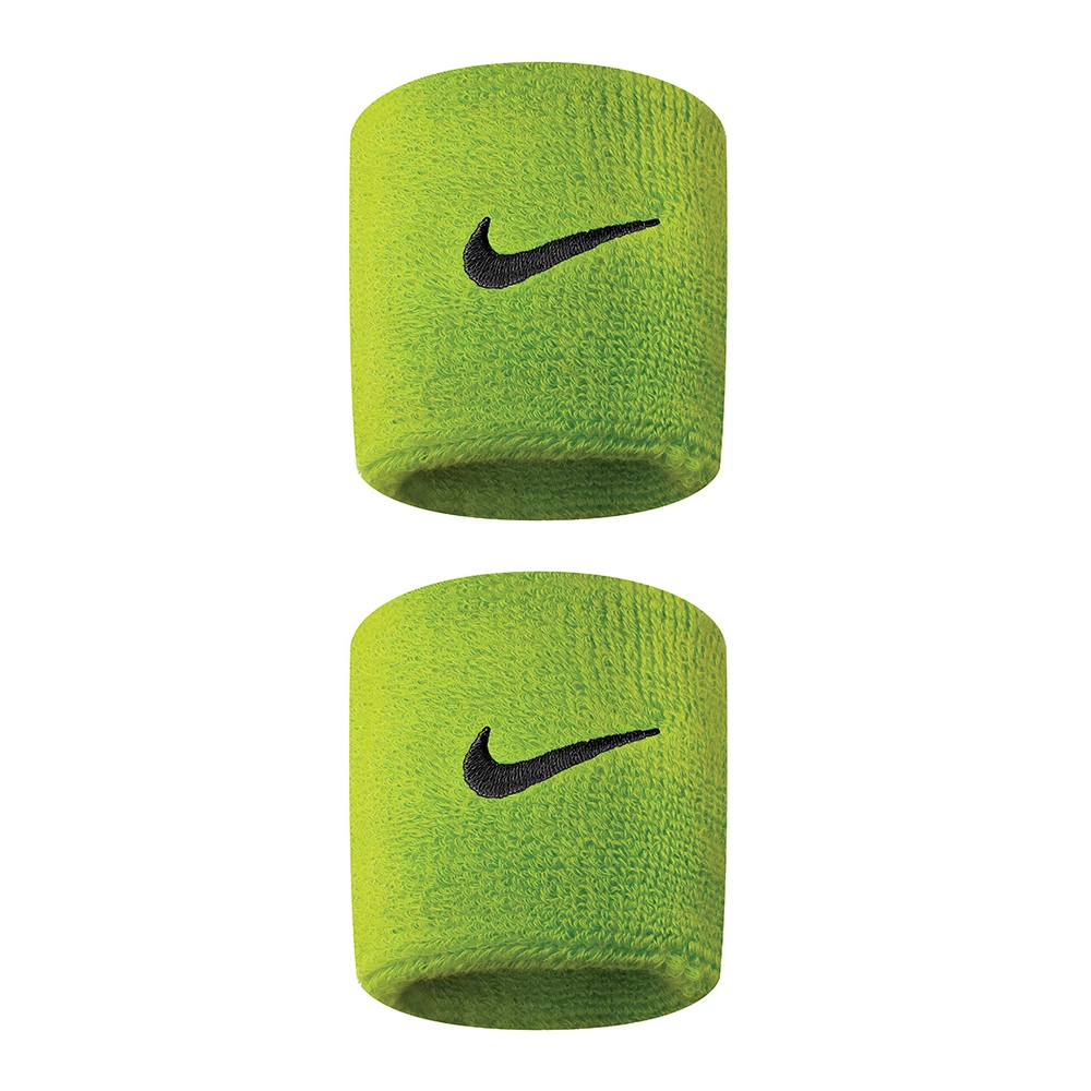 The Nike singlewide wristband is 2.5 inches and made from absorbent cotton/nylon/spandex blend with an embroidered Nike Swoosh. 2 per pack.