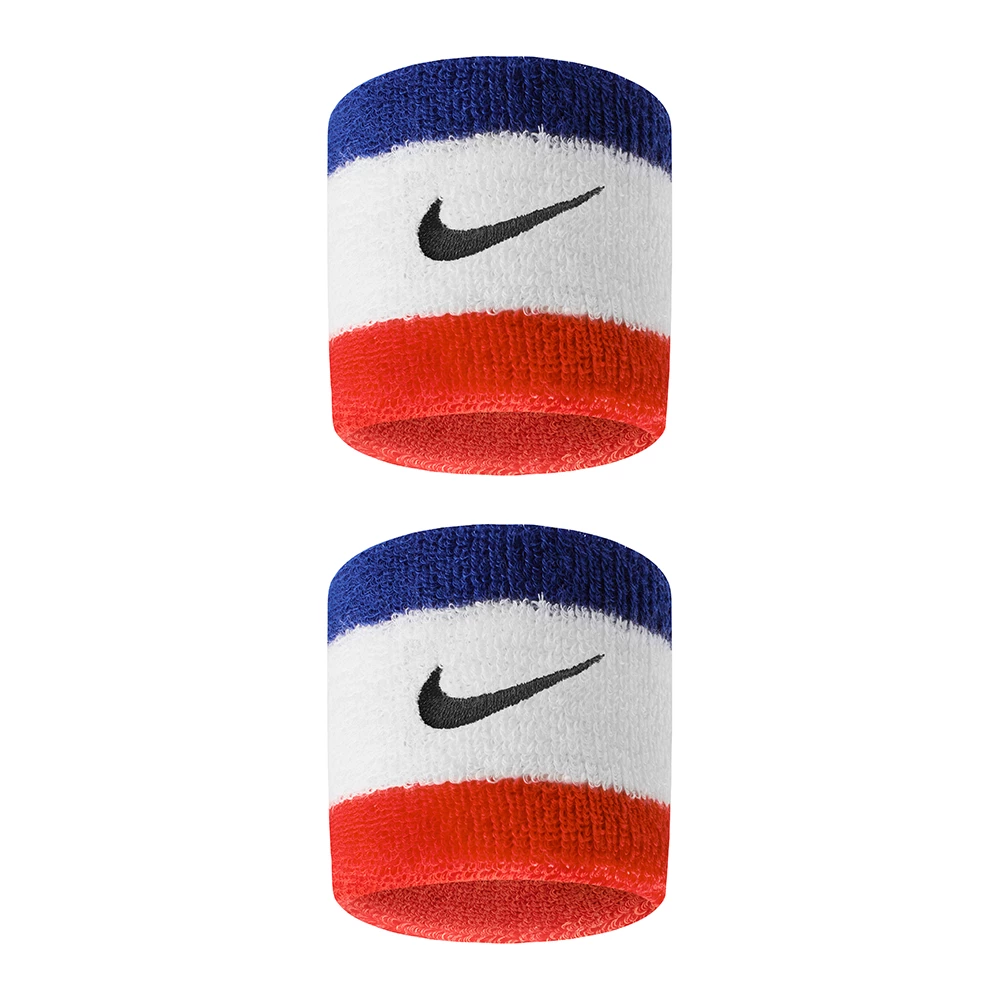 The Nike singlewide wristband is 2.5 inches and made from absorbent cotton/nylon/spandex blend with an embroidered Nike Swoosh. 2 per pack.