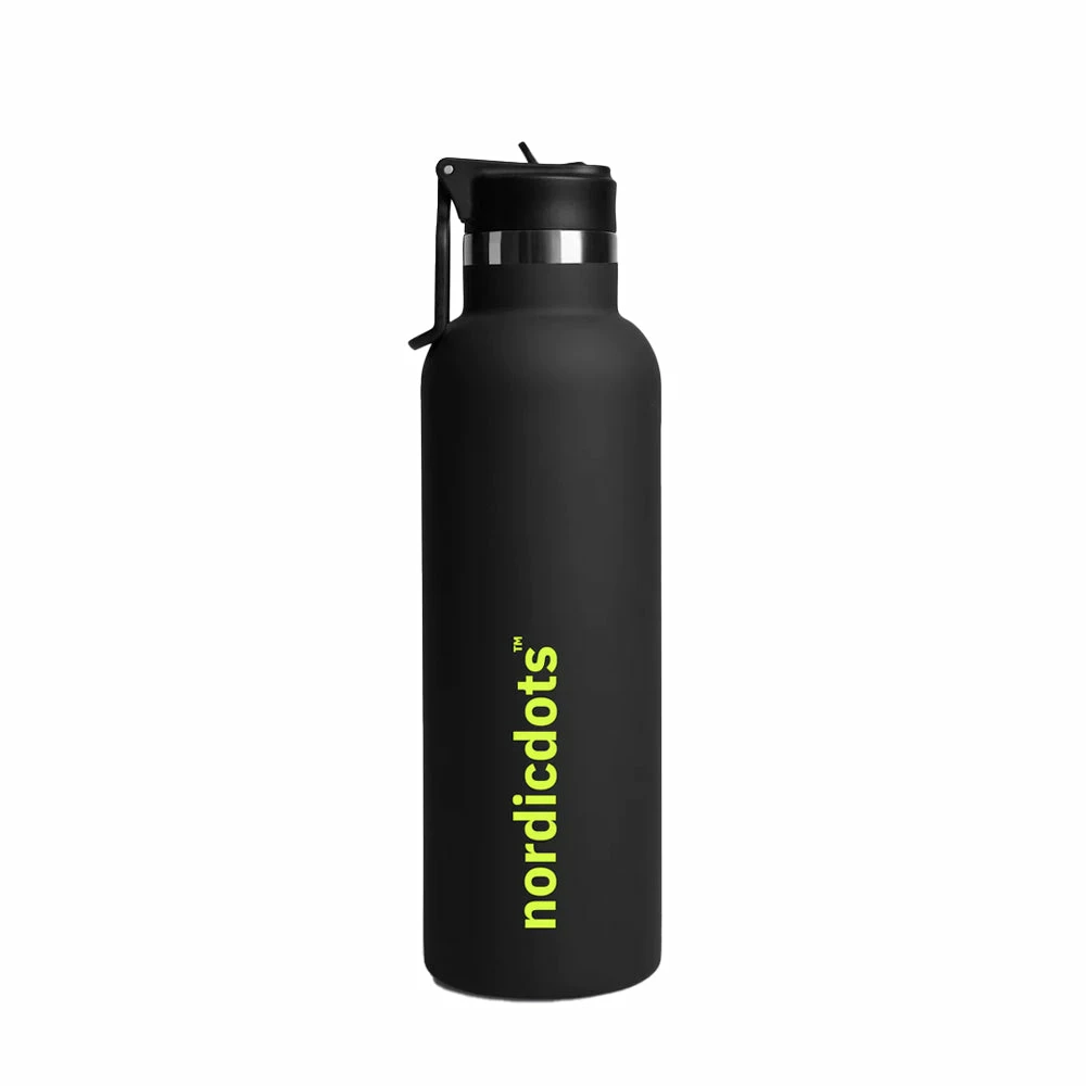 Eco-friendly reusable water bottle made of food grade stainless steel. Keeps liquids warm or cold during the day thanks to the double-walled technology and vacuum sealing. Capacity 750ml.
