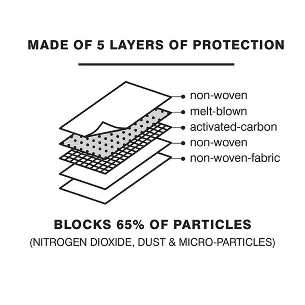 These Swiss Mobility mask filters have 5 layers of protection and stop 65% of particles in the air (nitrogen dioxide, dust and microparticles). Best protection after the N95 mask. Good for 3 days if worn full time, otherwise change after 5 days. Pack of 10 filters. For TAC1143SMLW masks.