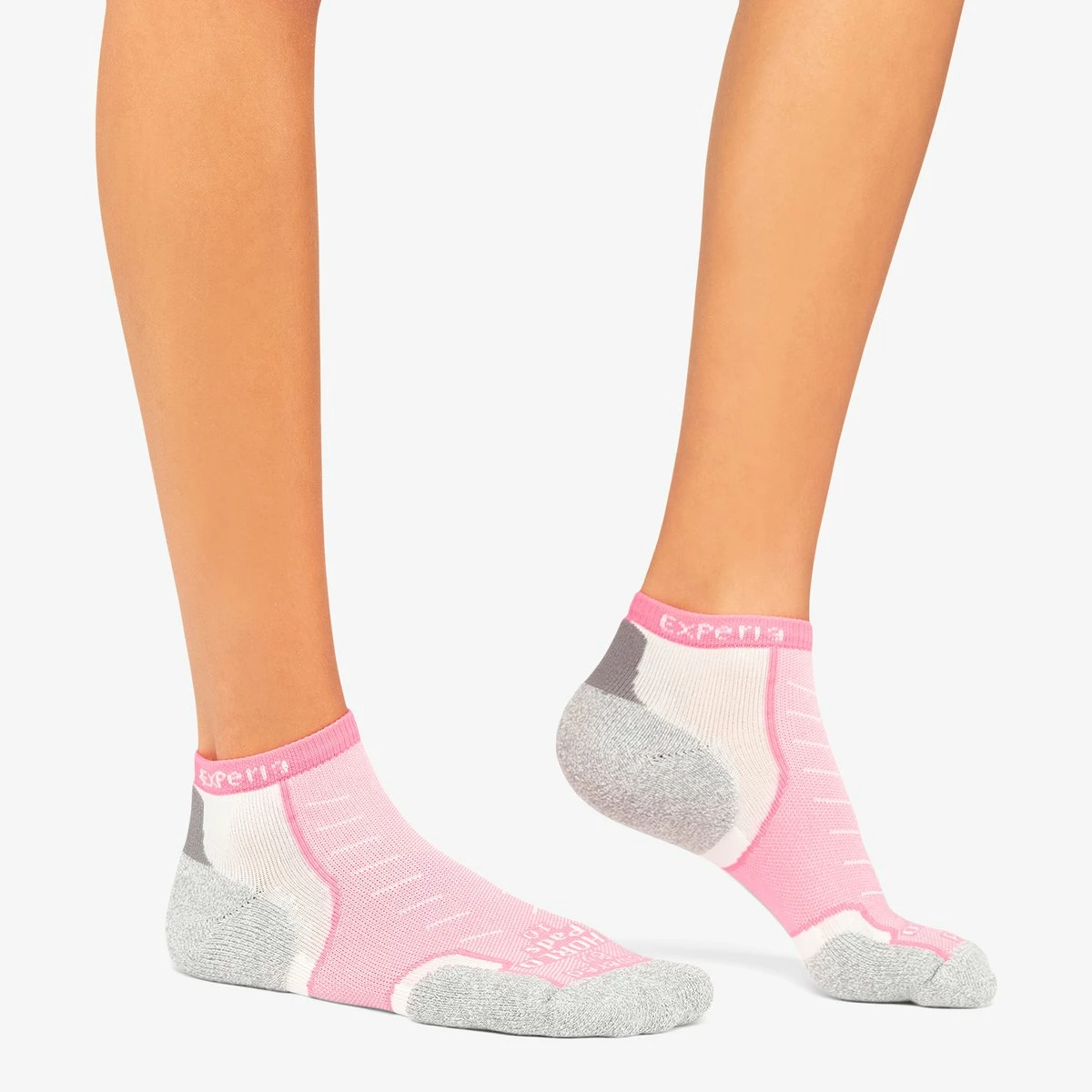 Designed for carefree feet! Experia is powered by THORLO anatomically engineered pads for foot protection without bulk and weight. The sculpted padding helps prevent blisters and foot pain by absorbing the shearing and impact forces experienced by your feet. Multi-spot design is crafted to allow you to run, walk and play longer, better and most importantly…carefree!