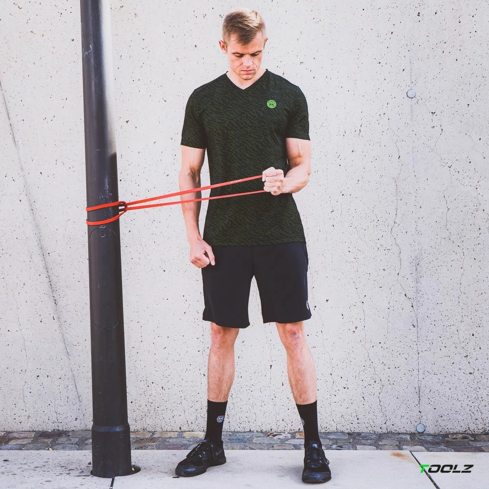 The TOOLZ resistance bands effectively improve strength and also train mobility and flexibility of the body. The fitness bands can be combined optimally with the equipment training or the free training and make possible a variety of exercises. The material made of high-quality latex is durable and ensures long enjoyment of the bands.